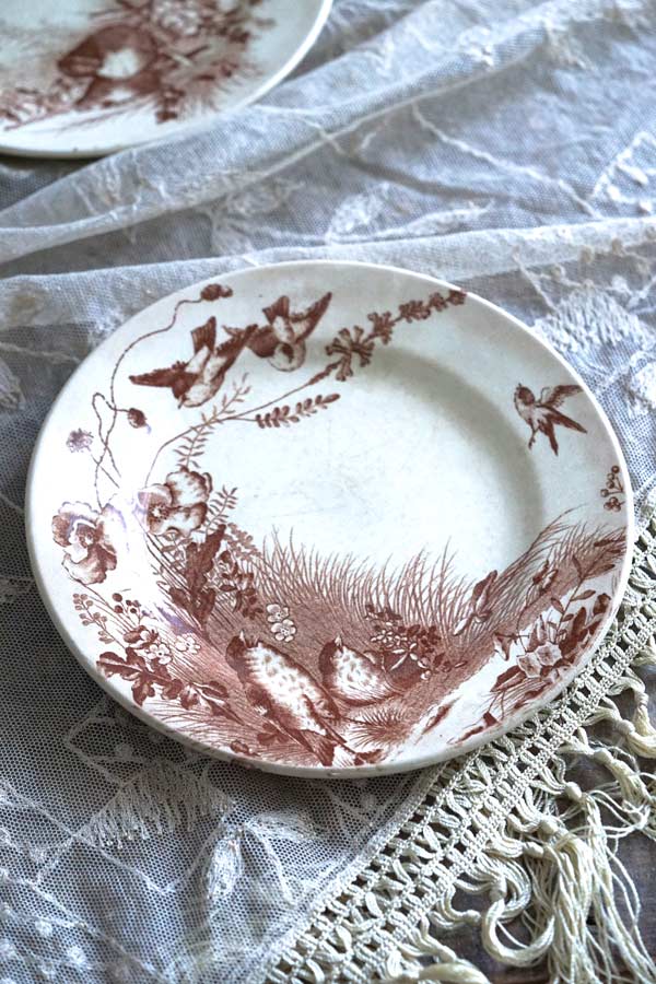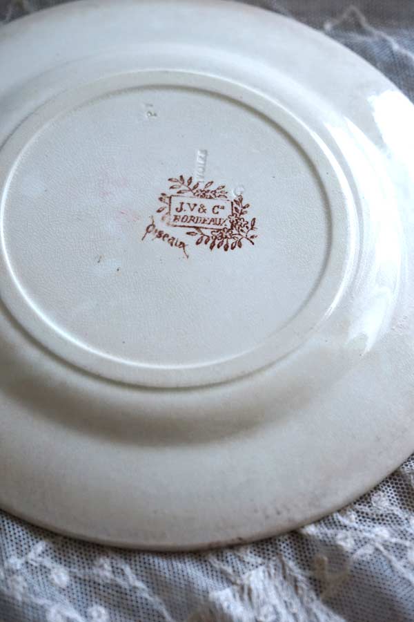 鳥の暮らしが描かれた19C後期の平皿 JV&C Bordeaux D gc-1072
