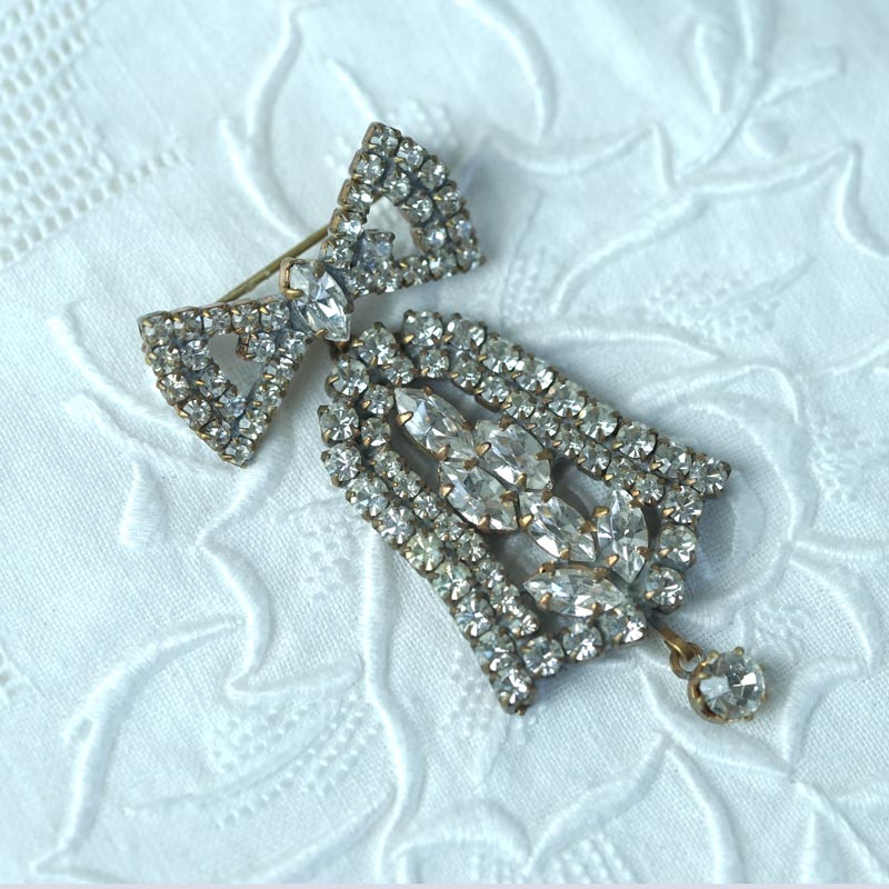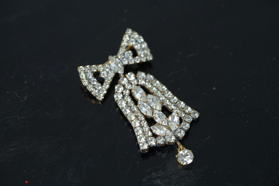 輸入アンティーク通販TOP >アンティークアクセサリー > ブローチ > ラインストーンの美しい鐘とリボンのブローチ1960年代頃 5.5×3cm ga-1136