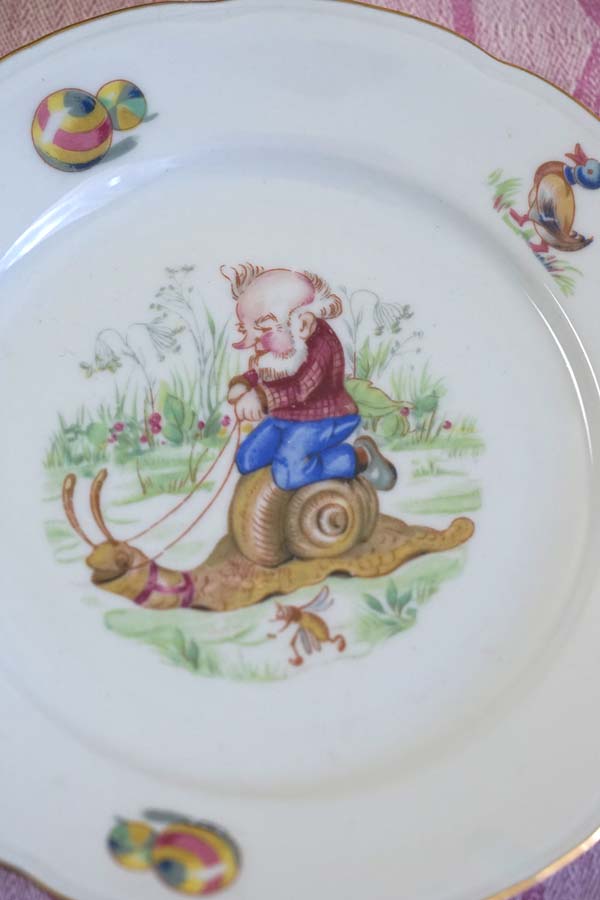 輸入アンティーク通販TOP >アンティーク食器・陶磁器・テーブルウエア > 東欧・ハンガリー、チェコの陶磁器・テーブルウエア > ポーランドの小人とかたつむりの挿絵が可愛いデザートプレートW17.5cm gc-1861