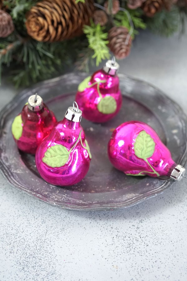 ローズ色の洋梨ボール4個H5.5cm/