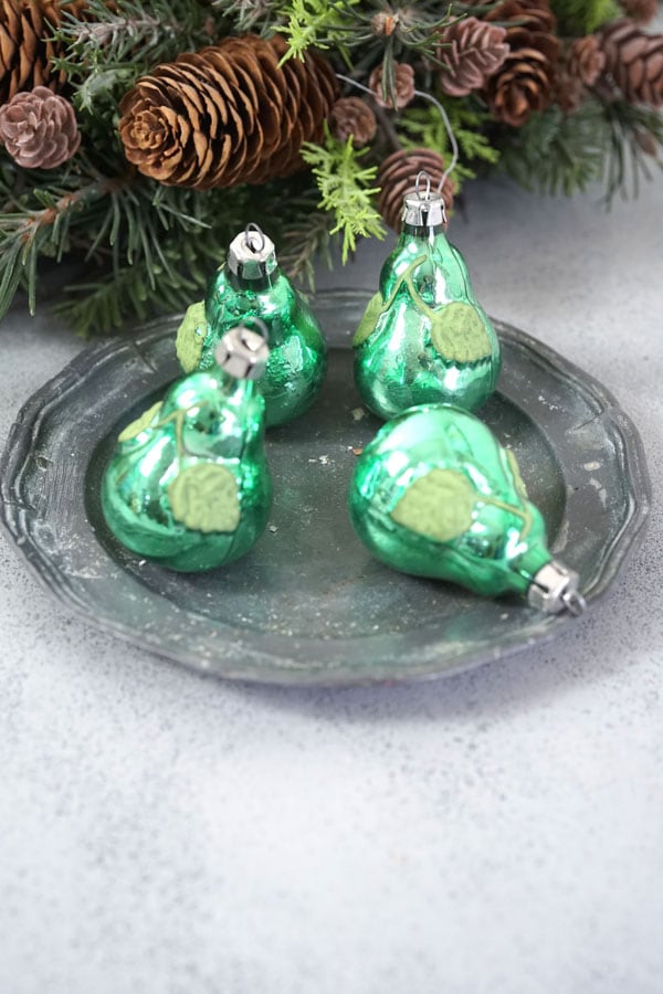 グリーンの洋梨ボール4個サイズH5.5cm。