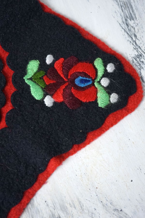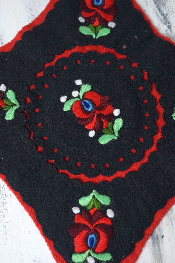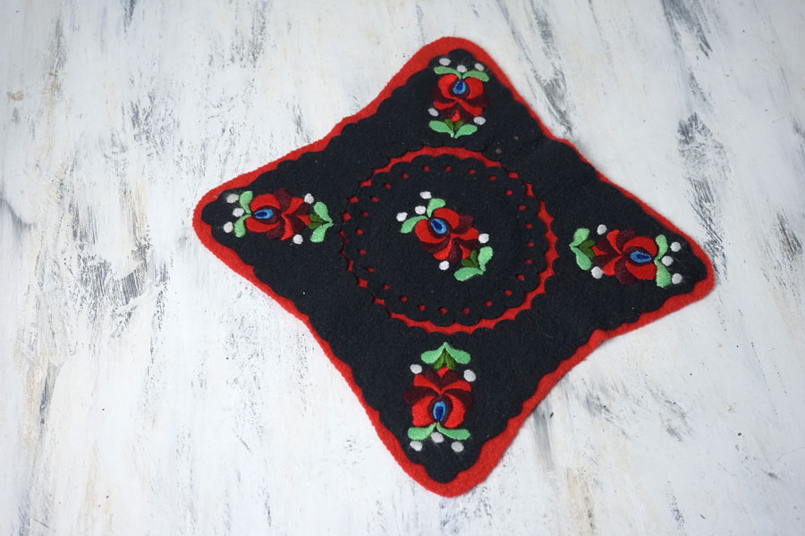 ハンガリー マチョーのブラック&ホワイトのフエルトに刺繍マットです。