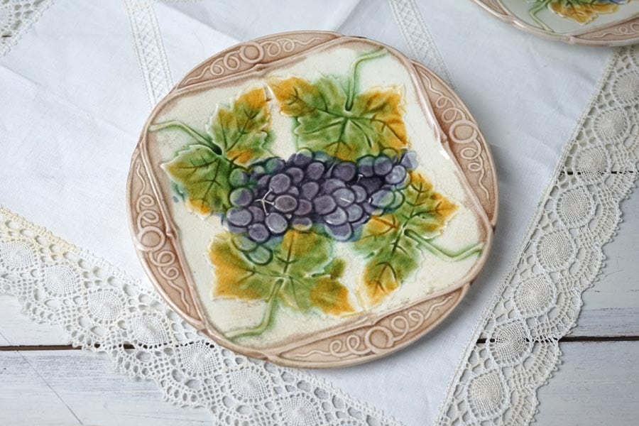 輸入アンティーク通販TOP >アンティーク食器・陶磁器・テーブルウエア > バルボティーヌ > フランスバルボティーヌブドウのプレートW20cm19C後期頃 W20cm gc-1882