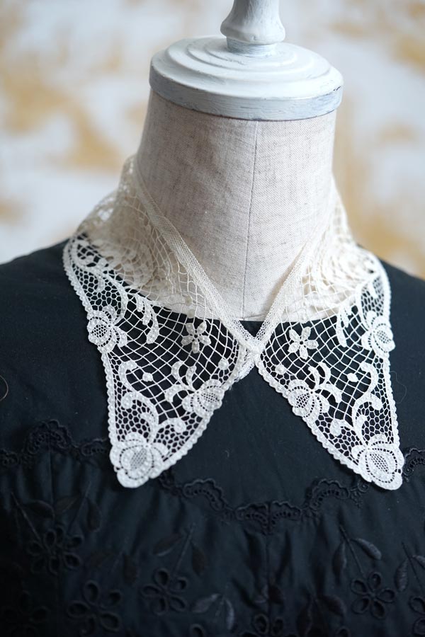 アンティークレースのシャツカラータイプのつけ襟です。