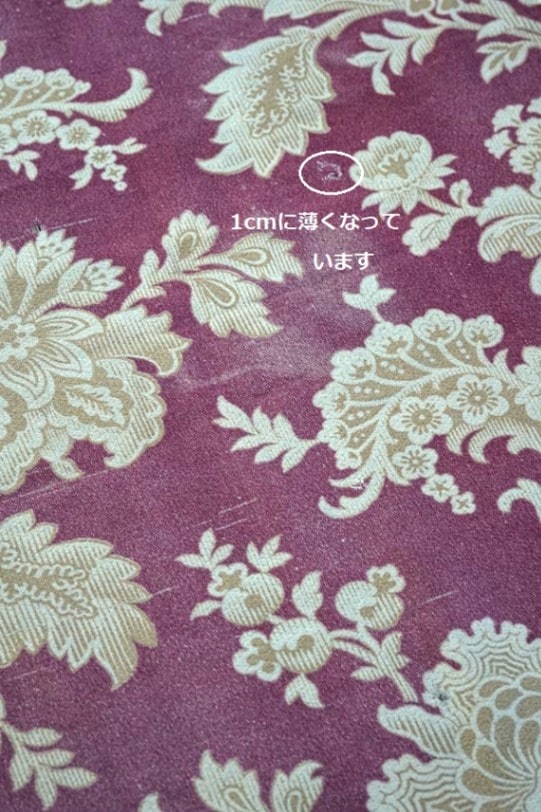カーテンとして使われていたようで少し色褪せや5mmほどの薄くなっている個所や小さなホールが3.4カ所にあります。とても雰囲気のある素敵なファブリックです。