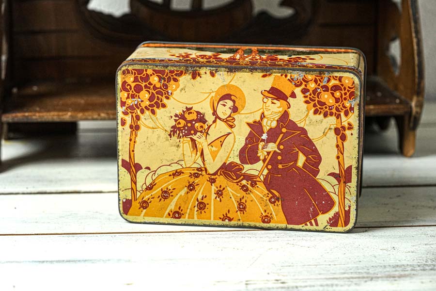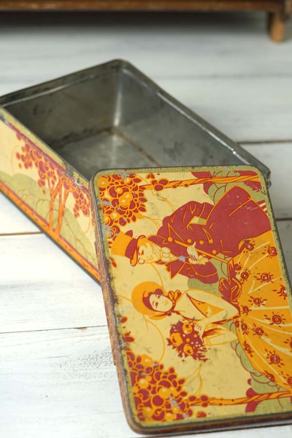 幸せそうな2人のティン缶17.5×12×7.5cm 1950年代頃 gk-616