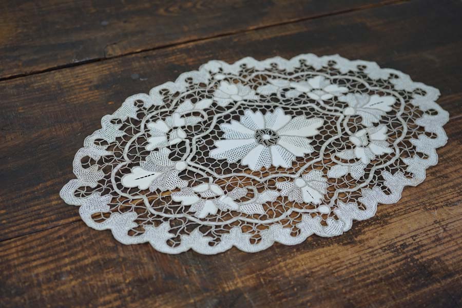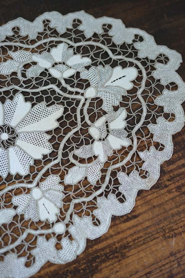 気の遠くなるほどの制作時間がかかったアンティークレースのマットです。