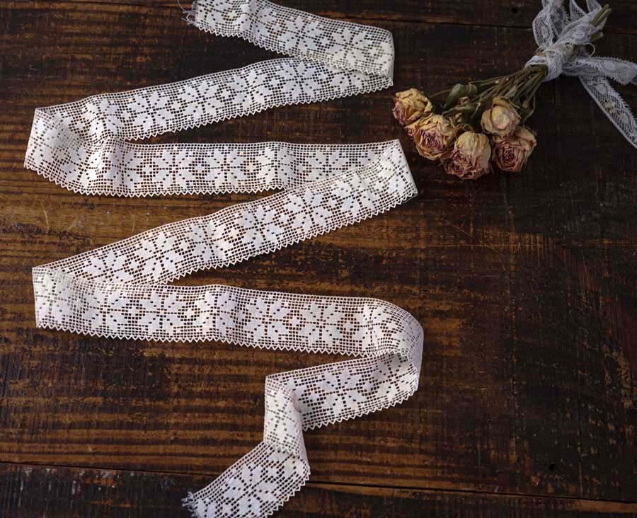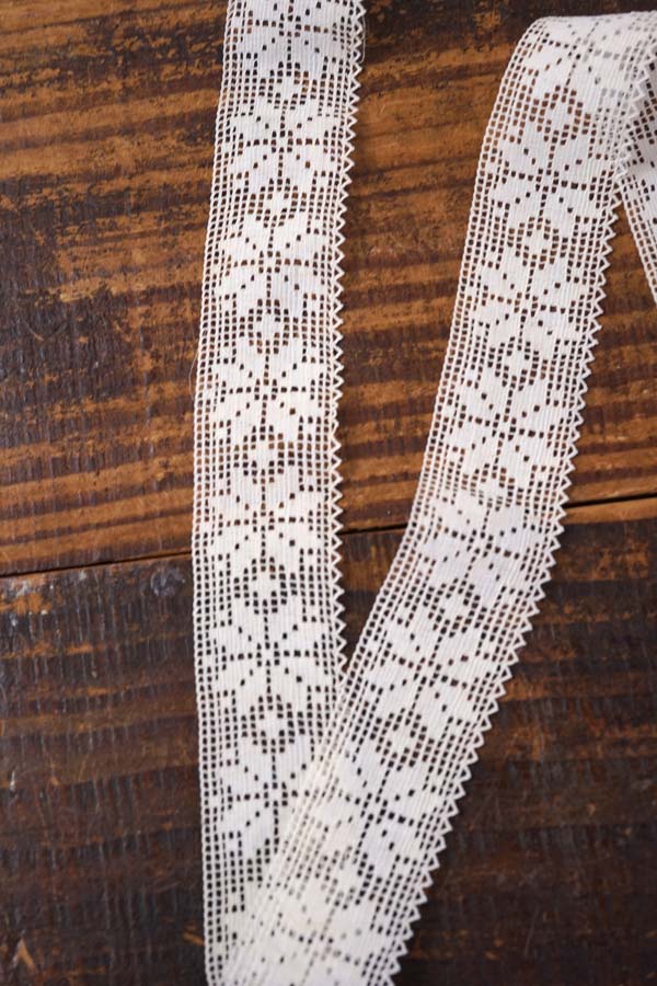 輸入アンティーク通販TOP >アンティークレース > 生成り色のお花モチーフのレーストリム125×3cm gla-1903