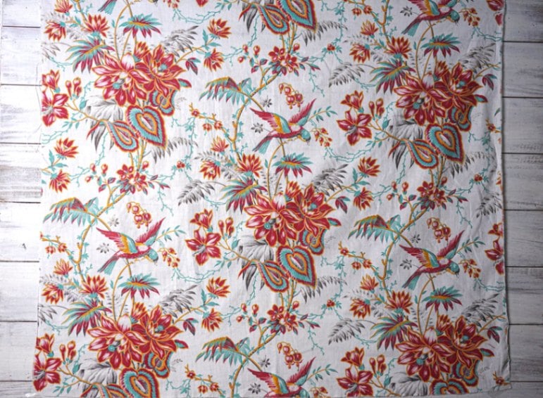 アンティークスクリーンプリントの鳥とお花のコットンファブリックです。