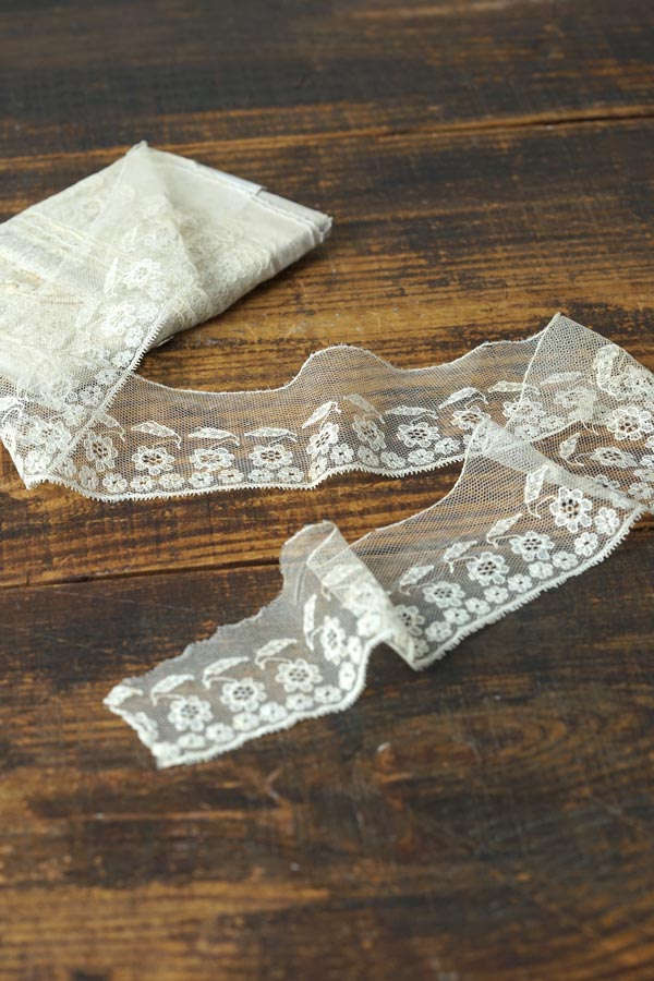 輸入アンティーク通販TOP >アンティークレース > レーストリム > お花のモチーフがふんわり美しいチュールレーストリムW6.5×110cm gla-1924