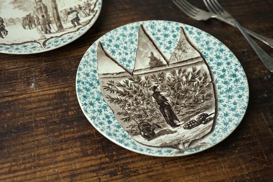 輸入アンティーク通販TOP >アンティーク食器・陶磁器・テーブルウエア > サルグミンヌ > サルグミンヌ Sarregueminesオリーブの収穫のプレート19C後期20cm gc-1701
