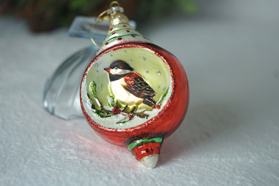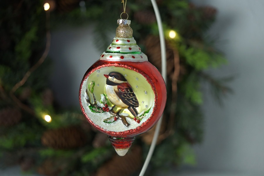 キラキラのグリッターが施された小鳥のリフレクターオーナメントです。