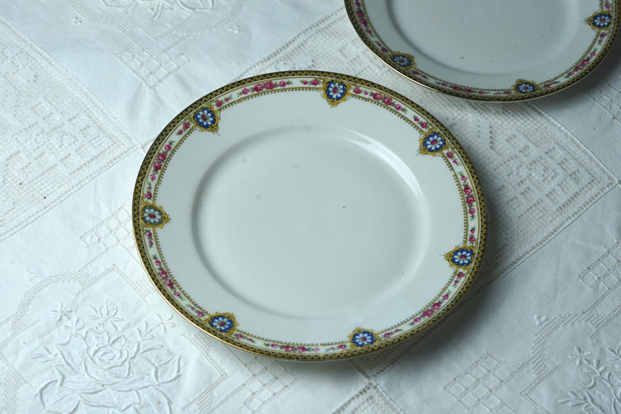 アンティークリモージュの金際とお花のデザートプレートW23cm gc-1960