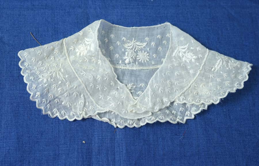 時を超えて愛されるアンティークホワイトワーク刺繍の小さめのつけ襟 gla-1954