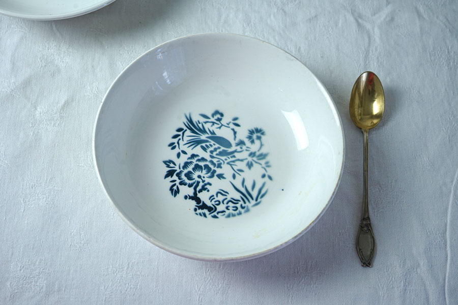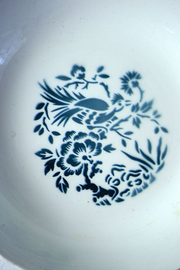白いボールに鳥のステンシルが可愛いプレートです。