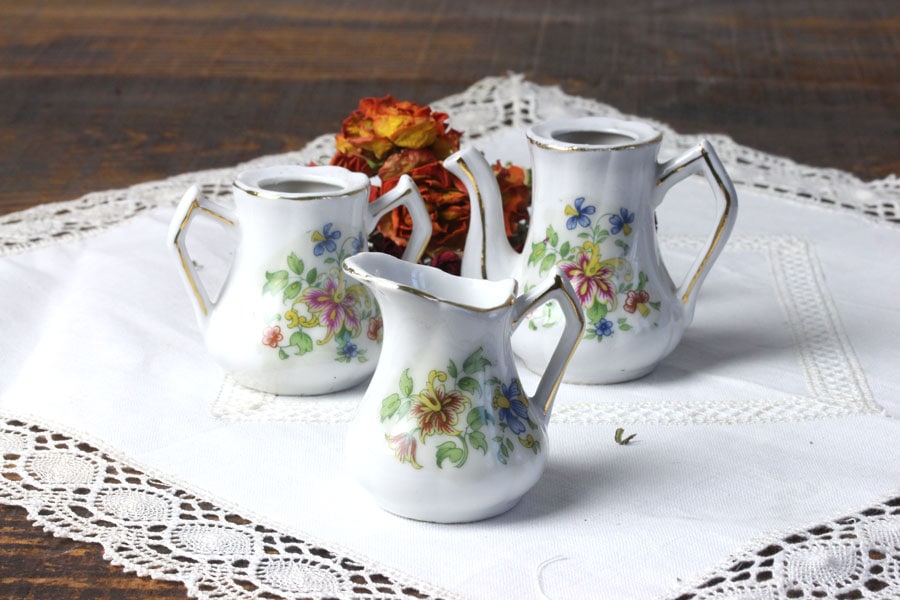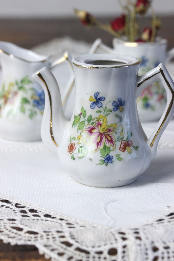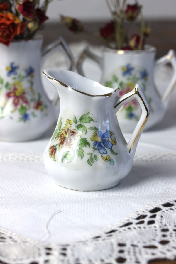 シュガーポットとコーヒーポットには蓋がありませんが、ドライフラワーやムスカリなどの球根を入れて飾るのに最適です。