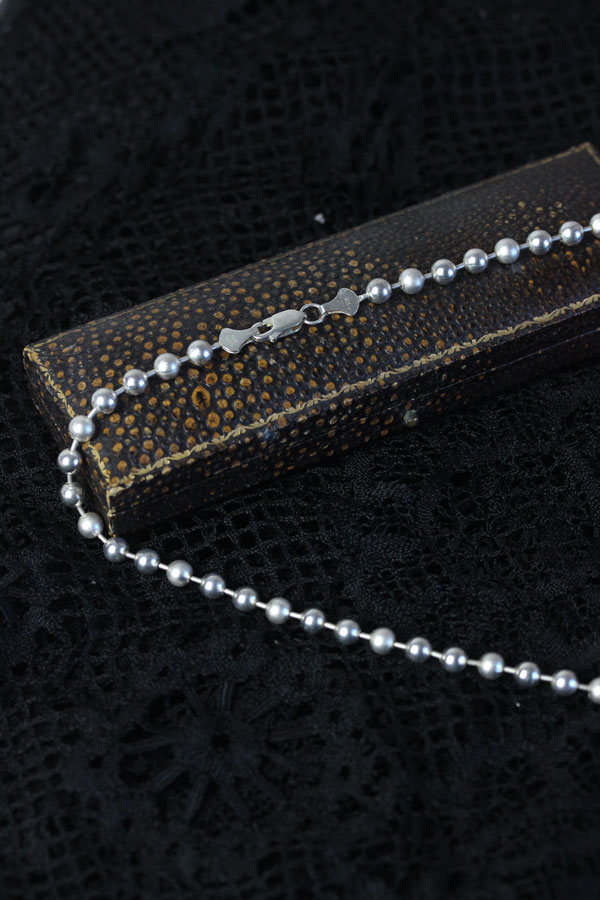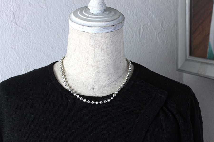 真珠のような輝きをメキシカンシルバー製のネックレス。光沢のある5mm玉2個と、艶消し5mm玉1個が交互に連なり、上品で美しい表情を作り出しているネックレスです。