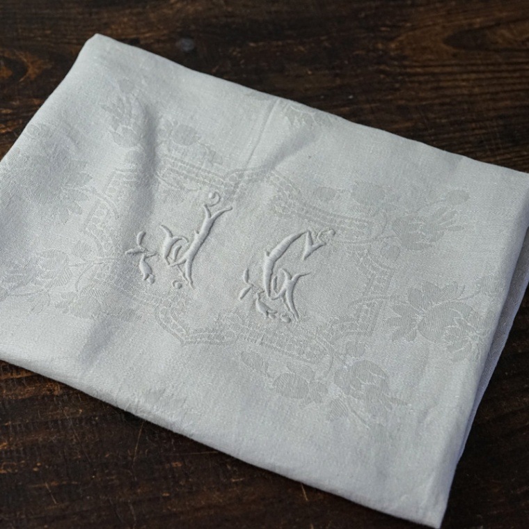 輸入アンティーク通販TOP >アンティークリネン > アルファベット・イニシャル刺繍リネン > ダマスク織りリネンにJCアルファベットイニシャル刺繍のナプキン78×65cm gli-0355