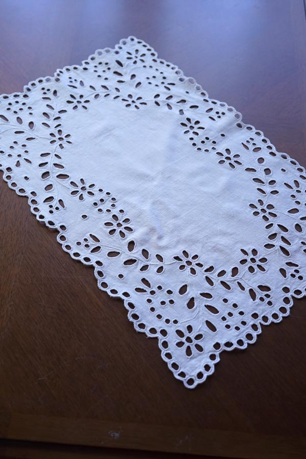 リネンにアイレット刺繍のマット