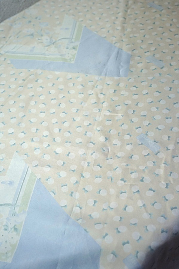薄いアイボリーの地色に、グレーがかった水色とパールカラーの組み合わせが、洗練された印象を与えます。