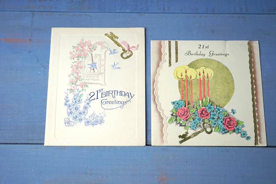 輸入アンティーク通販TOP >アンティーク書籍・手芸本&絵本 > カード類 > イギリスの21歳のバースデーカード2枚セットgh-301