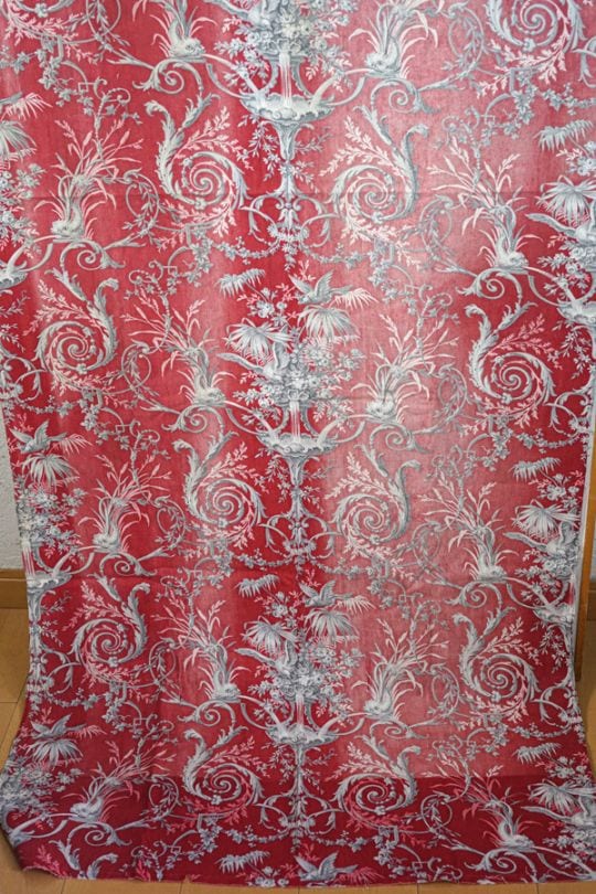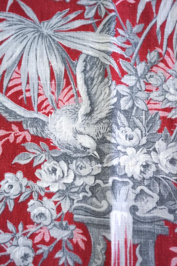 輸入アンティーク通販TOP >アンティーク&ヴィンテージファブリック > フレンチファブリックとトワル・ド・ジュイなど > フランスのアンティーク 花と鳥とドラゴンのコットンファブリック80×210cm gf-944