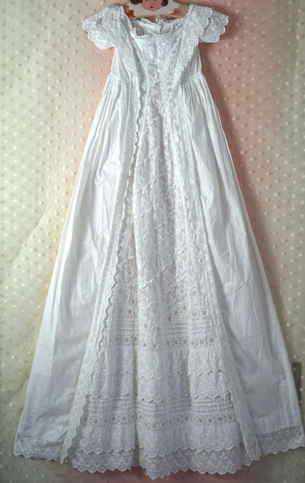 ベビーの誕生と健やかな成長を願って愛情をこめて作られたベビードレスです。