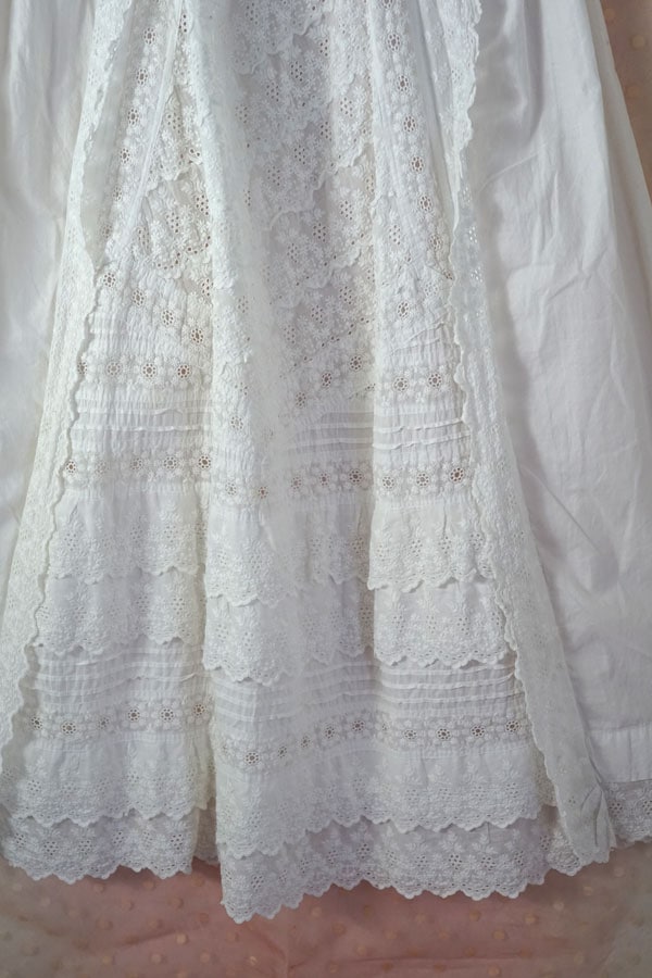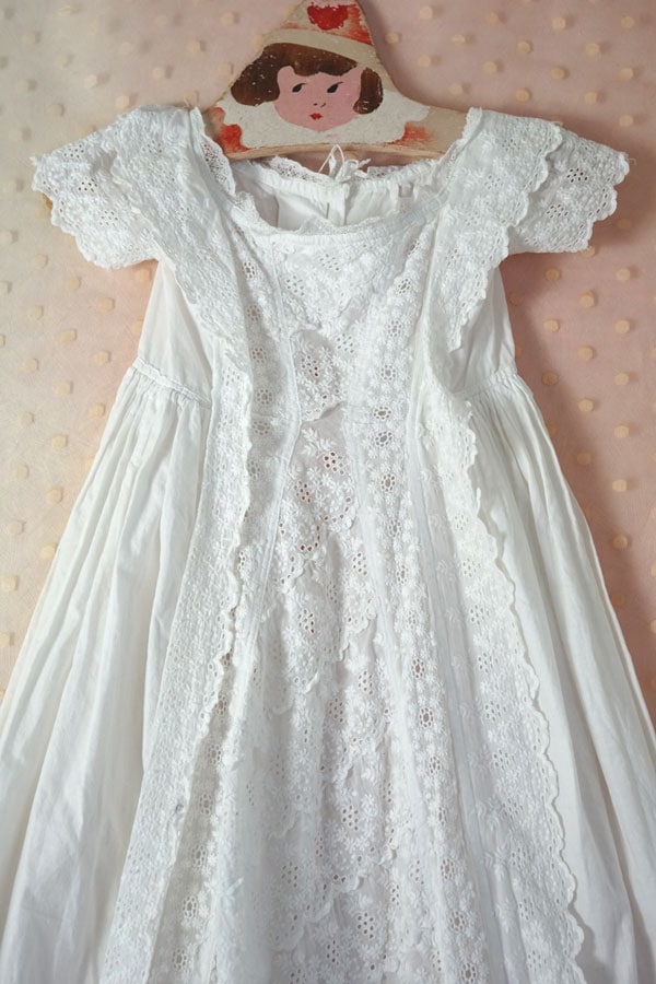 • 手刺繍のアンティークコットンレースが惜しげもなく使われています。