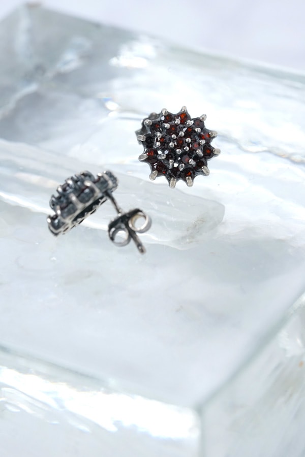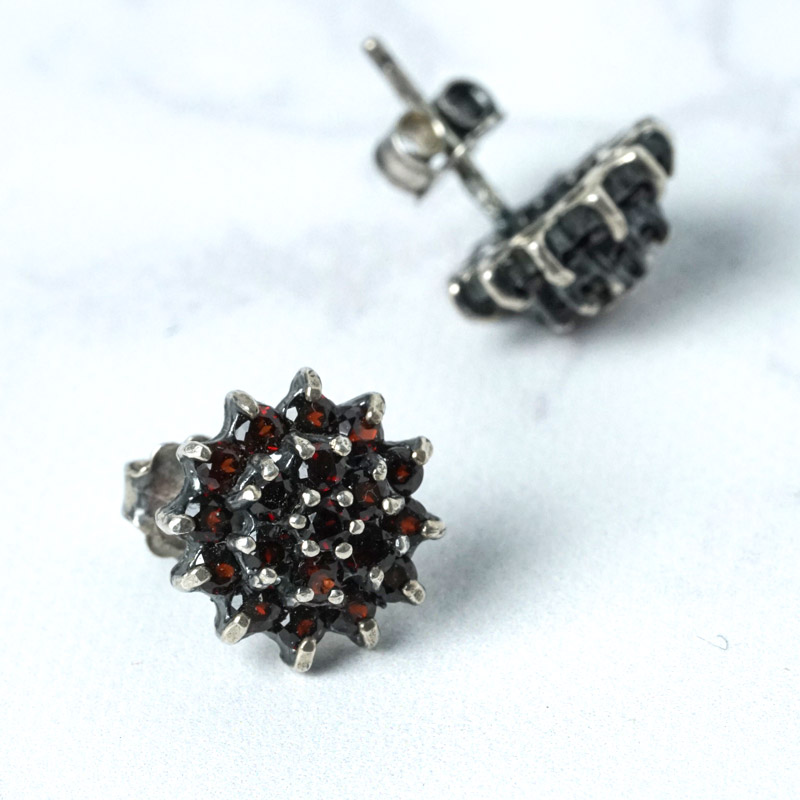 アザミのような1930年代頃オーストリアのガーネットのピアスW1×D0.5cm ga-1219