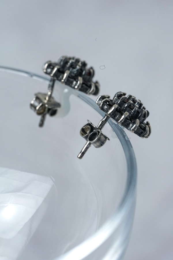 1930年代頃のオーストリアで作られた、シルバーとガーネットのヴィンテージピアスです。ポーランドで巡り合ったこの特別な一品は、アザミのような繊細な花がモチーフ。