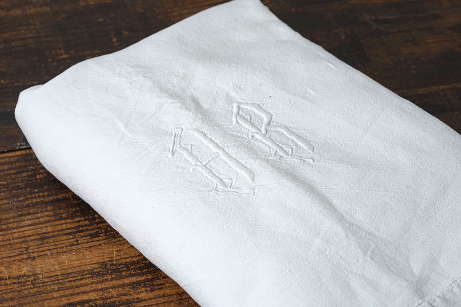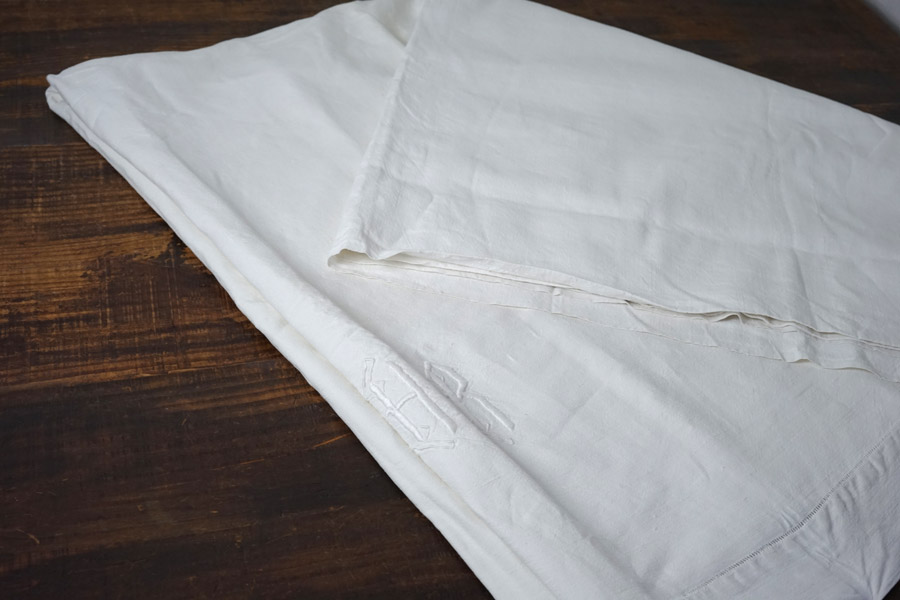 \フランスアンティークモノグラムHB刺繍入りリネンシーツ/