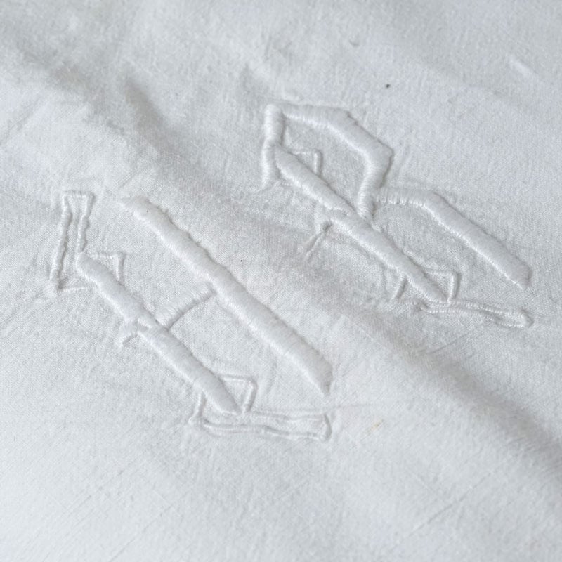 • モノグラムホワイトワーク刺繍のリネンシーツです。サイズ:W193×H234cm