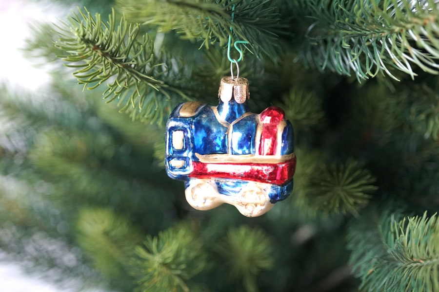 ポーランド アンティーク ボンブキ 吹きガラス クリスマス汽車のオーナメント (手描き・一点物) gx-664