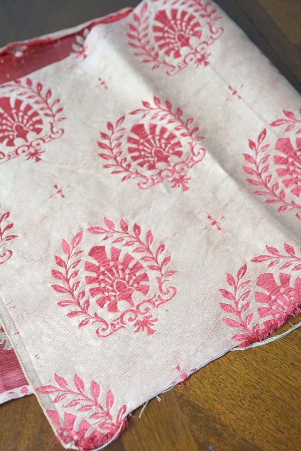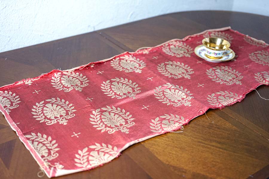 フランスアンティーク朱子織ファブリック93×38cm gf-982
