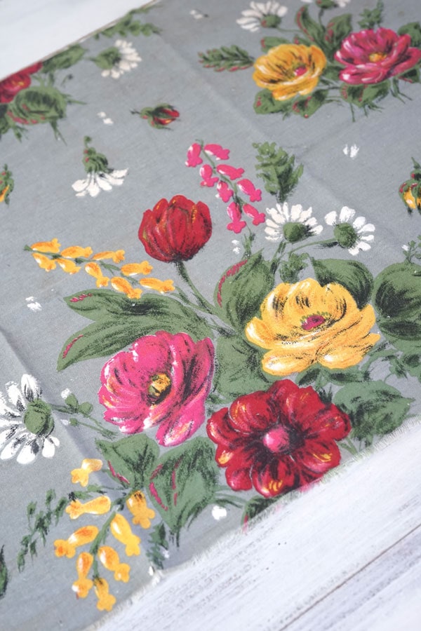 グレー地に鮮やかなタッチで描かれたお花たちが生き生きとしているとても魅力的なファブリックです。