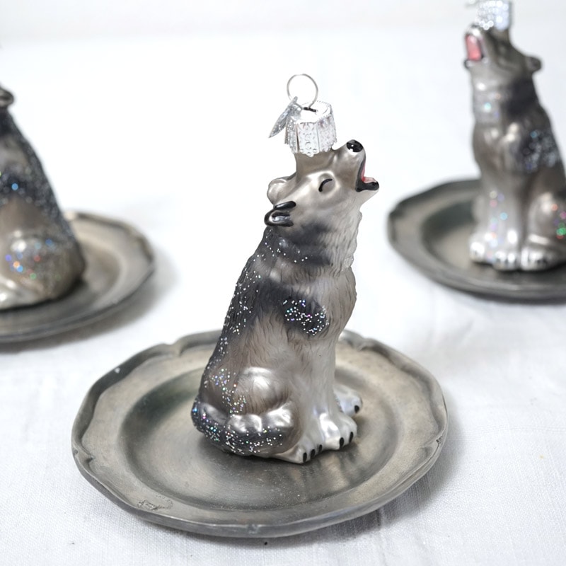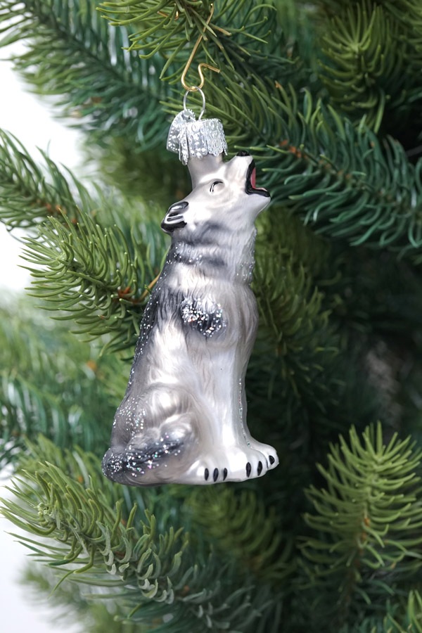 口を開けて吠えている姿がリアルでつい見いってしまう、よくできたオーナメントです。