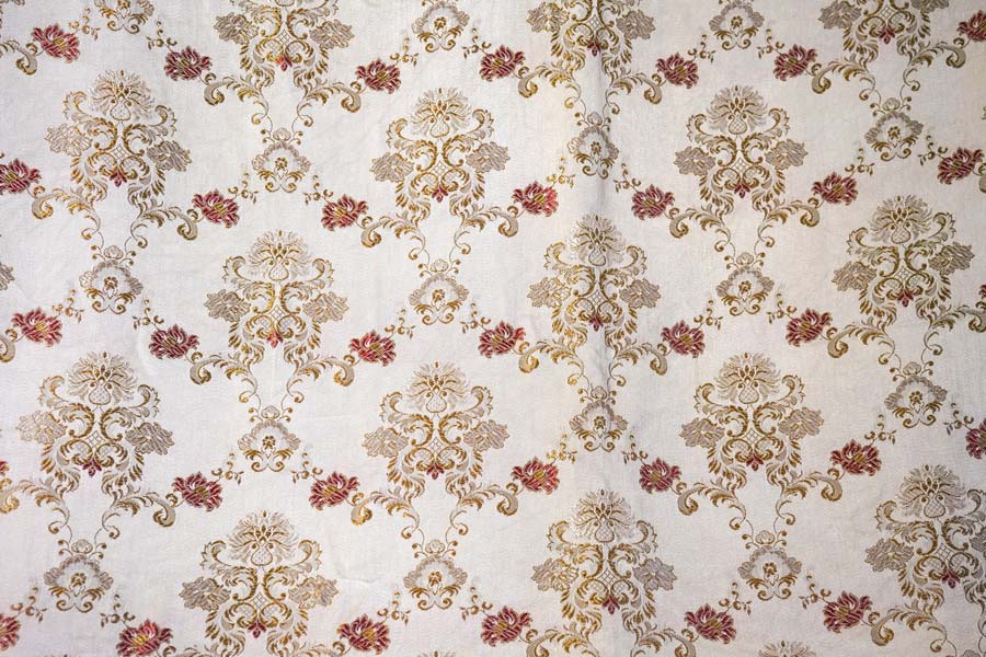 【イギリスアンティーク】繻子織のガーランドが織出された美しいインテリアファブリックです。