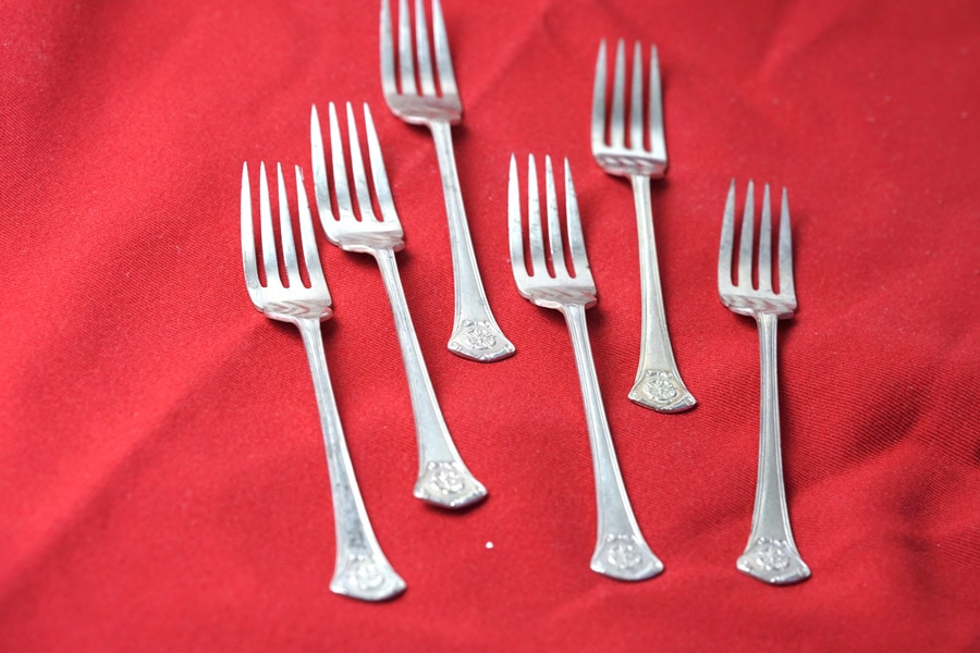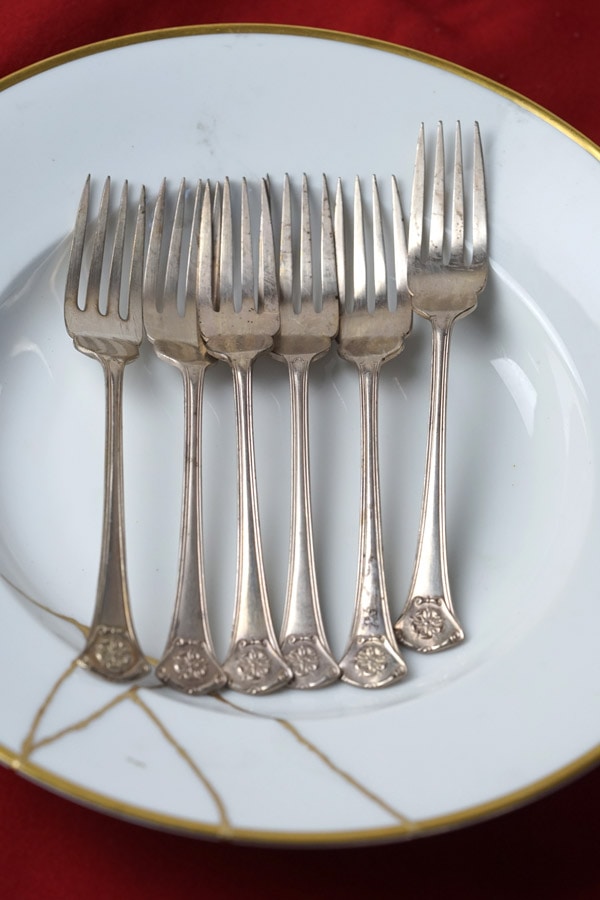 今回ご紹介するのは、まさにその技術の結晶である、1900年代頃のイギリス製デザートフォーク6本セットです。