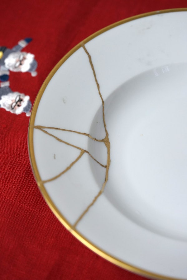 ドイツの名門窯ローゼンタールの金の縁取りが美しい深皿なんですが、ポーランドで出会って日本への輸送中に割れていました。美しいゴールド金際が入った白の深皿でぼってりとした高級感のある深皿でお気に入りでしたので、セラミックアーティストのこよなくスタッフに頼んで金継ぎで修復してもらいました。