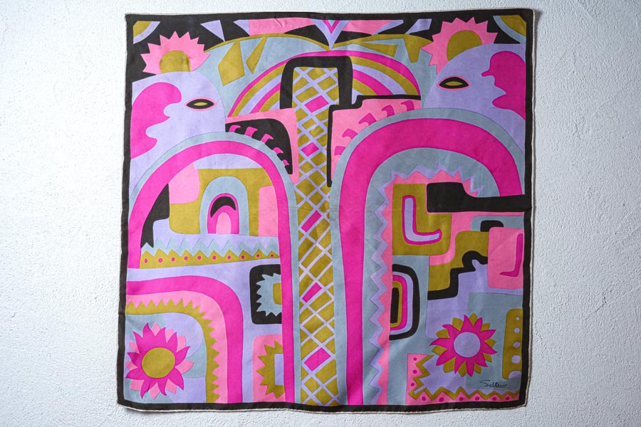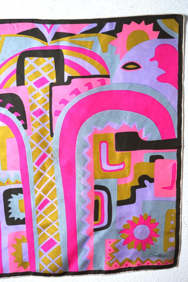 輸入アンティーク通販TOP >アンティークドレス > スカーフやショールや傘 > 1970s ヴィンテージ シルクスカーフ アブストラクト柄(Salteriv / 76×78cm)gd-292