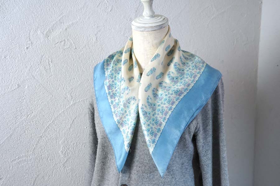 輸入アンティーク通販TOP >アンティークドレス > スカーフやショールや傘 > 英国ヴィンテージ スカイブルーの爽やかなシルクスカーフ(58×58cm)gd-304