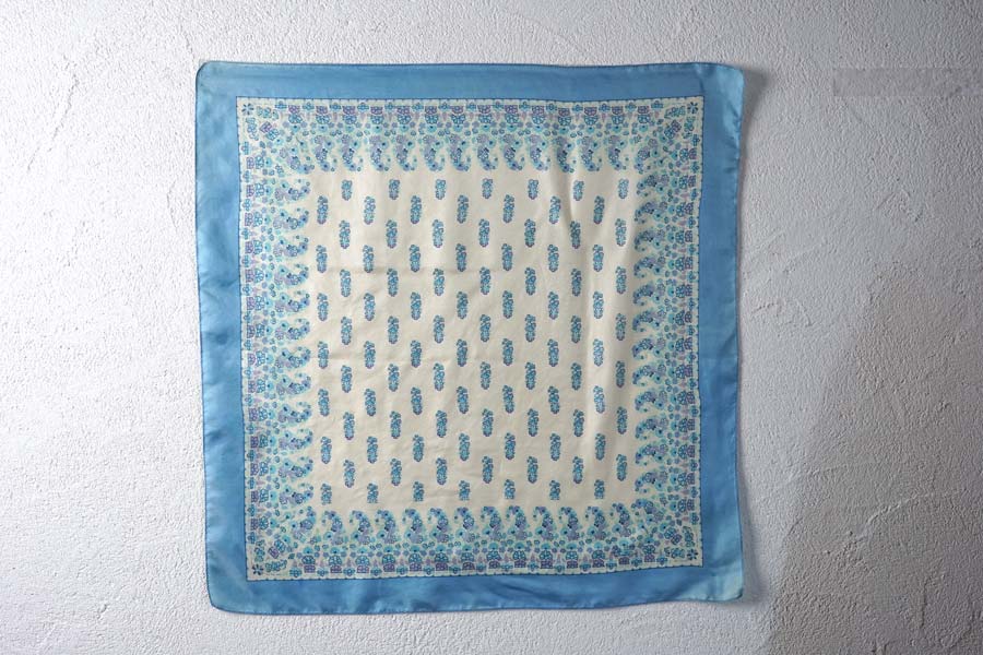 英国ヴィンテージ スカイブルーの爽やかなシルクスカーフ(58×58cm)gd-304