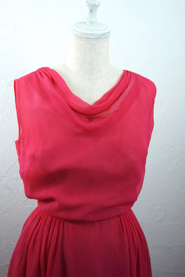 ベルギーのブリュッセルのヴィンテージショップで出会ったシルクシフォンのローズ色のドレスです。