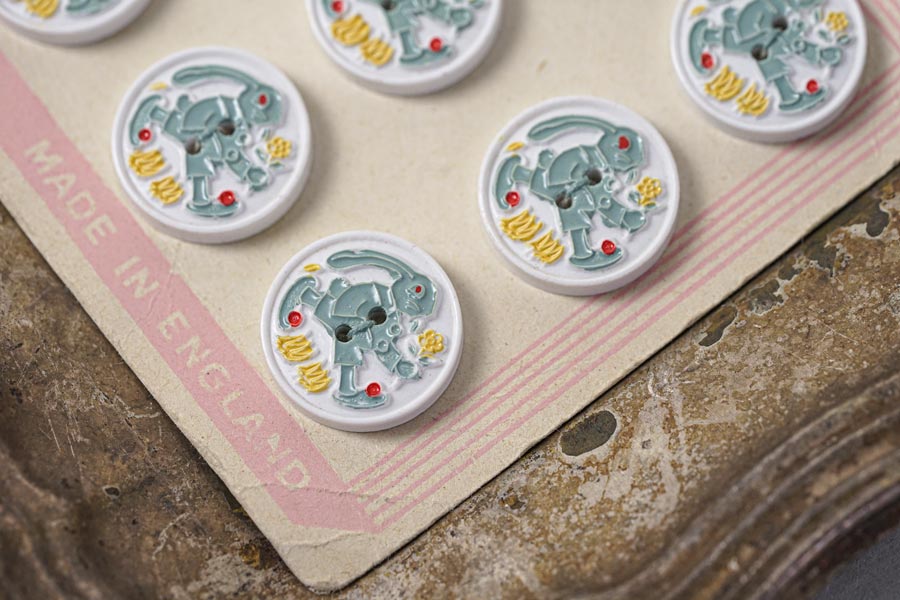 うさぎのご機嫌な姿のレリーフが素敵なボタンです。