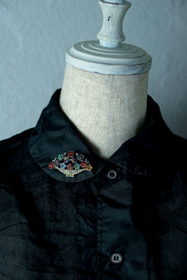 輸入アンティーク通販TOP >アンティークアクセサリー > ブローチ > マルチカラーのガラスストーンのフラワーバスケットブローチ5×2.7cm ga-1137