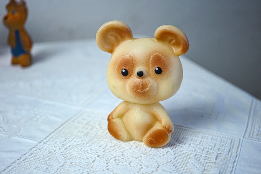 スタッフがバルト三国のラトビアで出会った、1970年代のソ連製のソフトラバーのクマのキャラクターです。