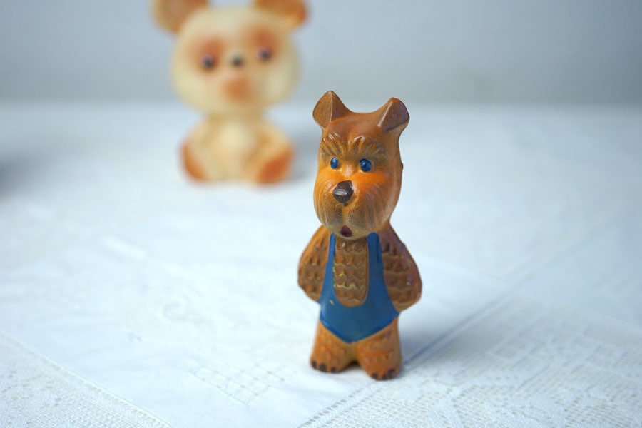 スタッフがバルト三国のラトビアで出会った、1970年代の旧ソ連製USSRの犬のキャラクターです。