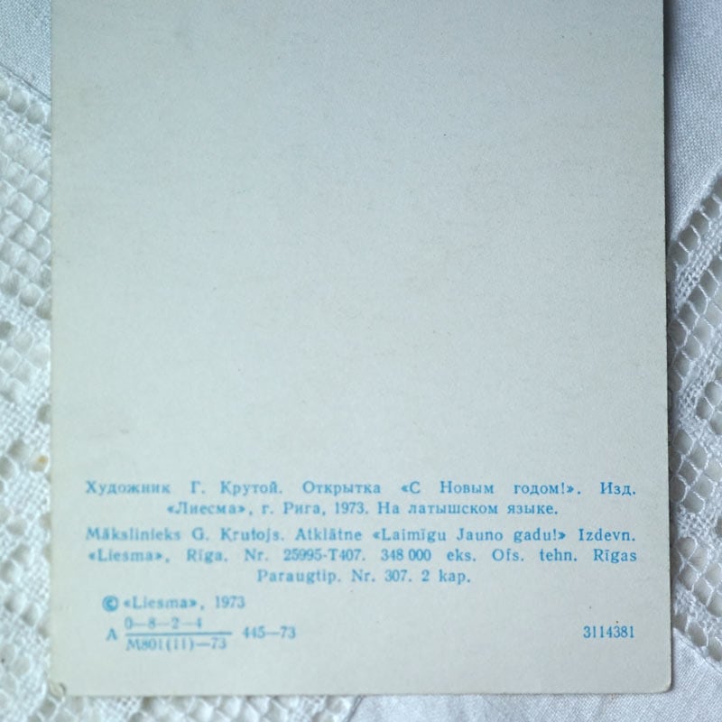 ラトビアの1980年代頃のクリスマスカード9×14cm。