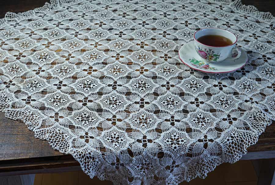 輸入アンティーク通販TOP >アンティークレース > クロッシュレース > ハンガリーの連続モチーフの美しいクロッシュのテーブルレース100×100cm gla-1943