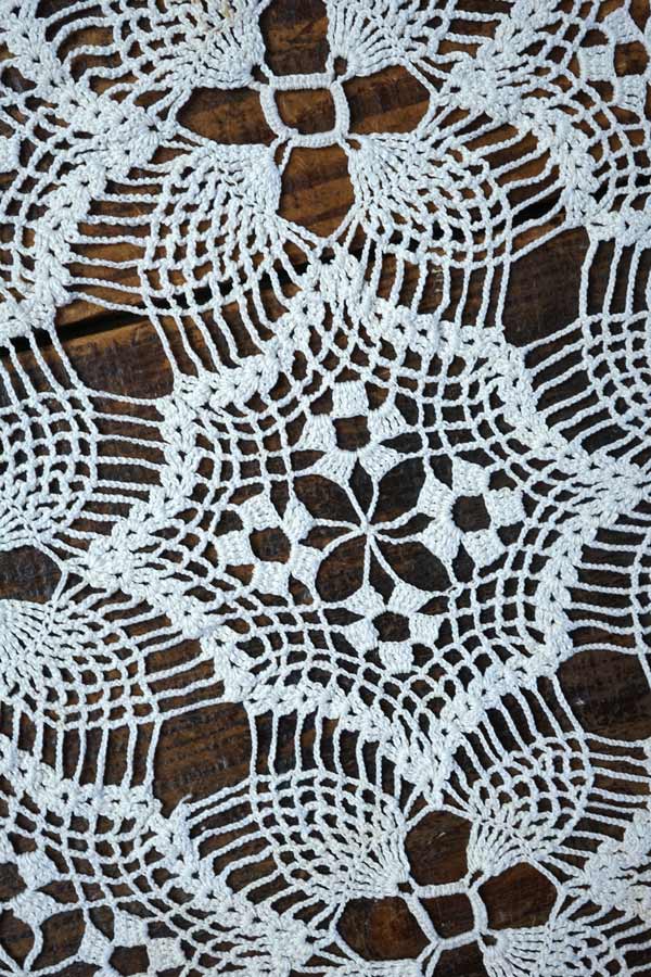 極細糸で精巧に編まれたレースで複雑な編地がとても魅力的です。